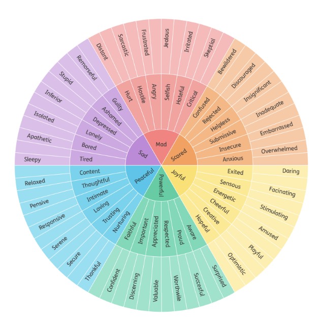 The Wheel is divided into primary emotions, secondary emotions, and tertiary emotions. Each layer delves deeper into the nuances of emotional experiences, allowing us to pinpoint our feelings with remarkable precision.