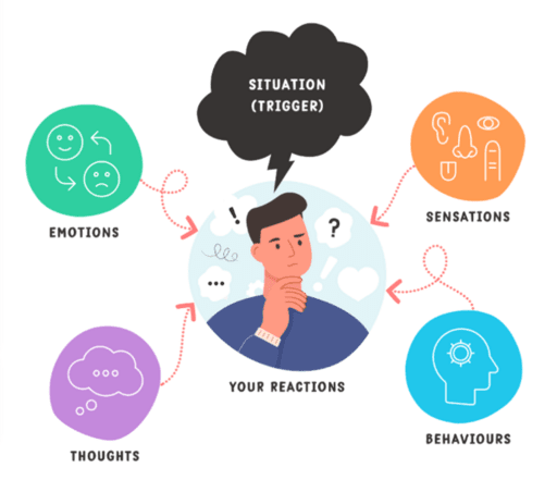 Our brains are wired to ‘protect us’ from potential threats. Sometimes, our brains will respond to a situation with a threat response, which can lead to unhealthy thinking patterns. Situations themselves don’t bother us—it’s the meaning we give them that influences our behaviour and reactions.